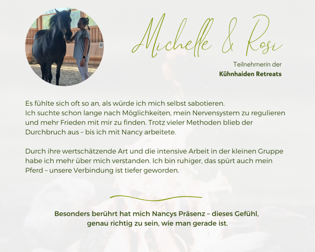 Manchmal spüren wir, dass wir mehr brauchen als reine Methoden oder Trainingstechniken. Mehr Ruhe. Mehr Körpergefühl. Mehr Verbindung – zu uns selbst und zu dem, was Pferde wirklich in uns berühren.